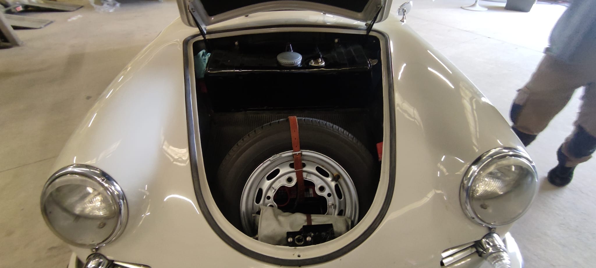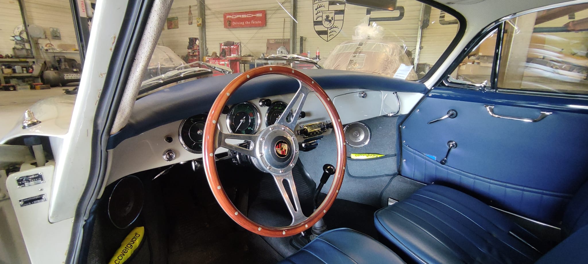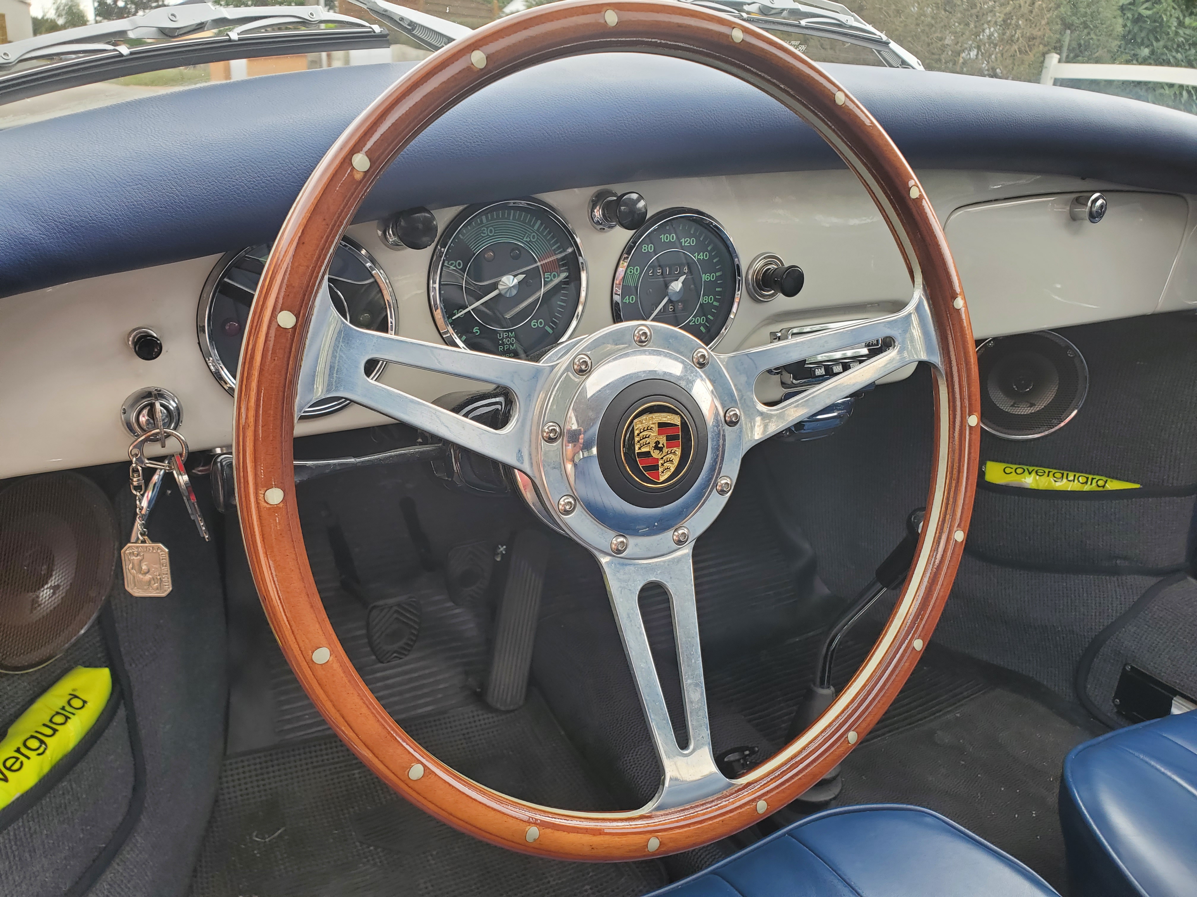 En plus du rare toit ouvrant et du rétro extérieur (mentionnés dans le CoA), il y a également un trés beau volant bois, une radio Blaupunkt (avec FM) d’époque restaurée à neuf, des HP modernes avec les grilles chromées comme à l’origine, des repose-têtes, des sangles à bagages en cuir et des sorties d’échappement chromées. La voiture à fait 29.000km depuis sa restauration totale terminée en Mars 2012 et est en parfait état avec une très belle patine générale et un beau cuir de qualité.