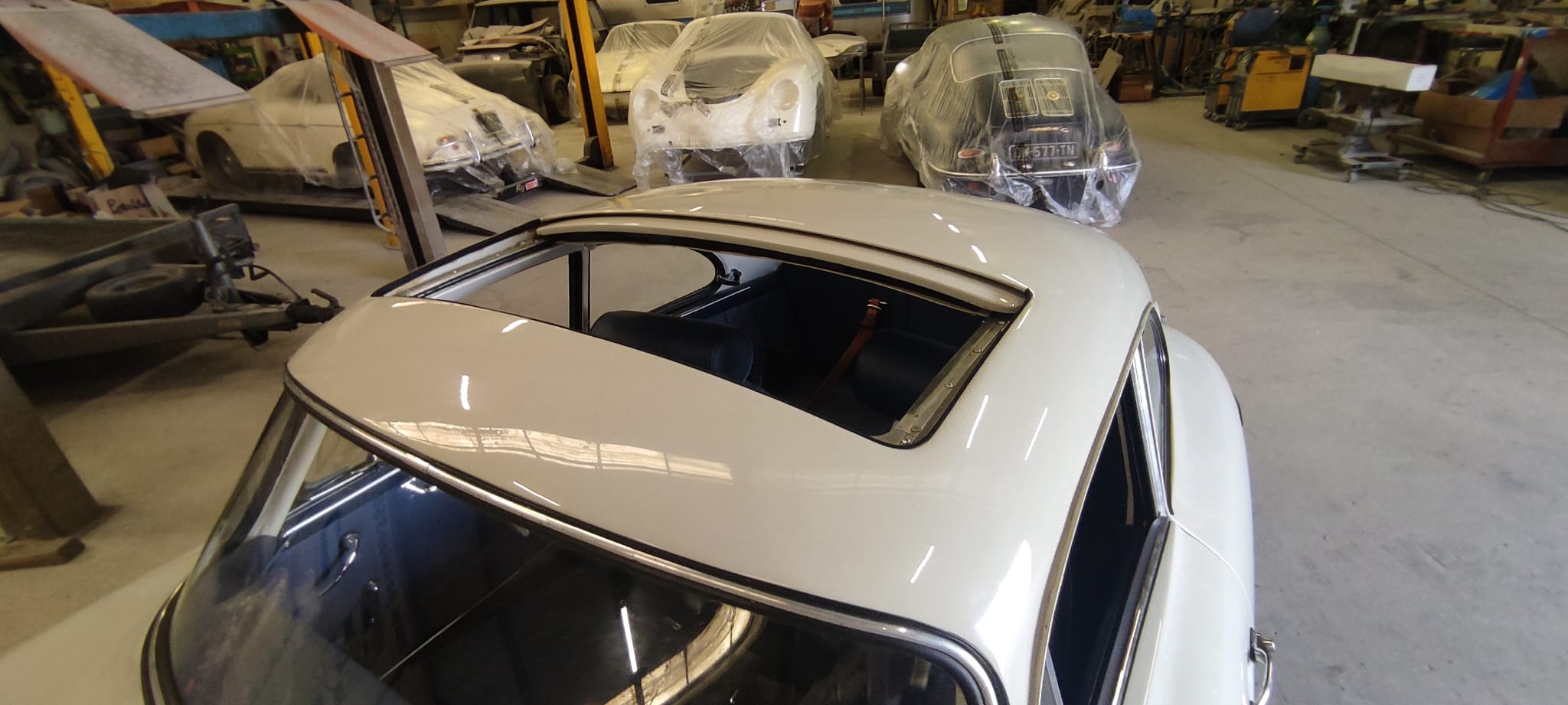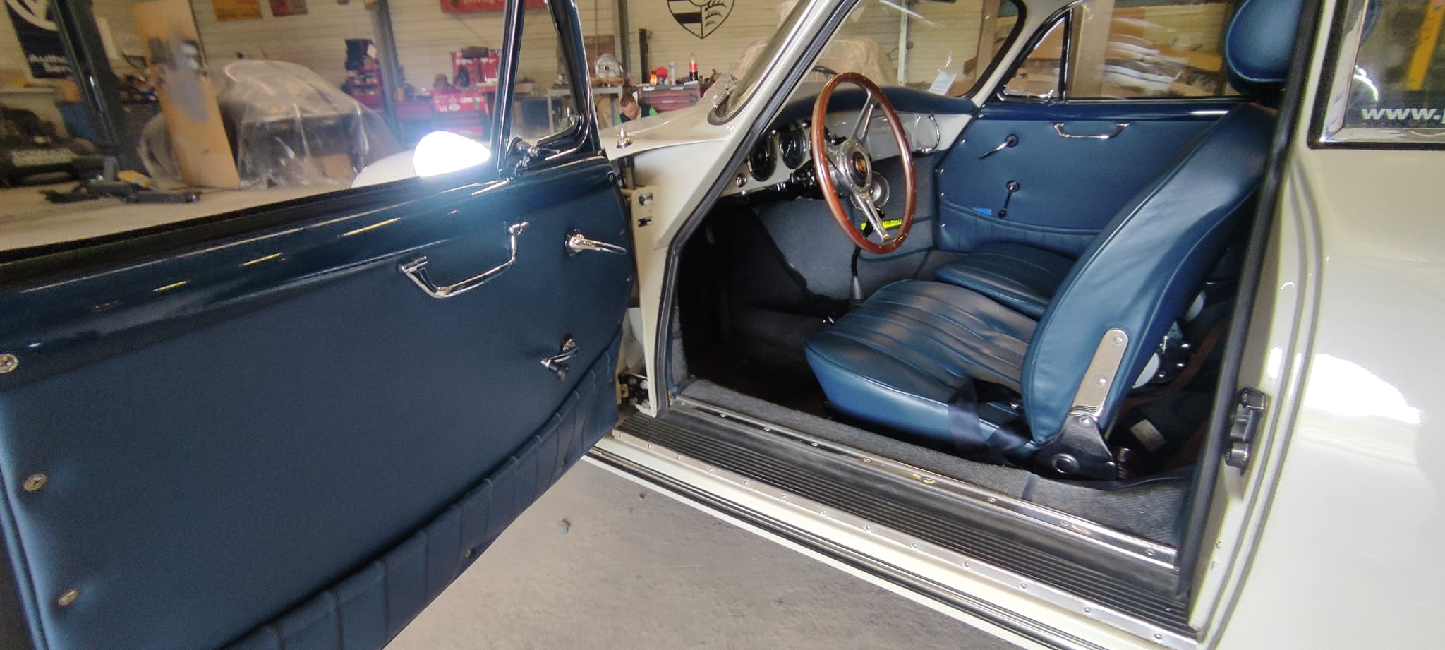 Matching numbers/couleur, rare combinaison (d’origine) gris heron/int.cuir bleu, historique connu, intégralement restaurée par nous-même il y a une dizaine d’années (2012) et toujours en parfait état. couleur « Gris Héron » intérieur cuir bleu.