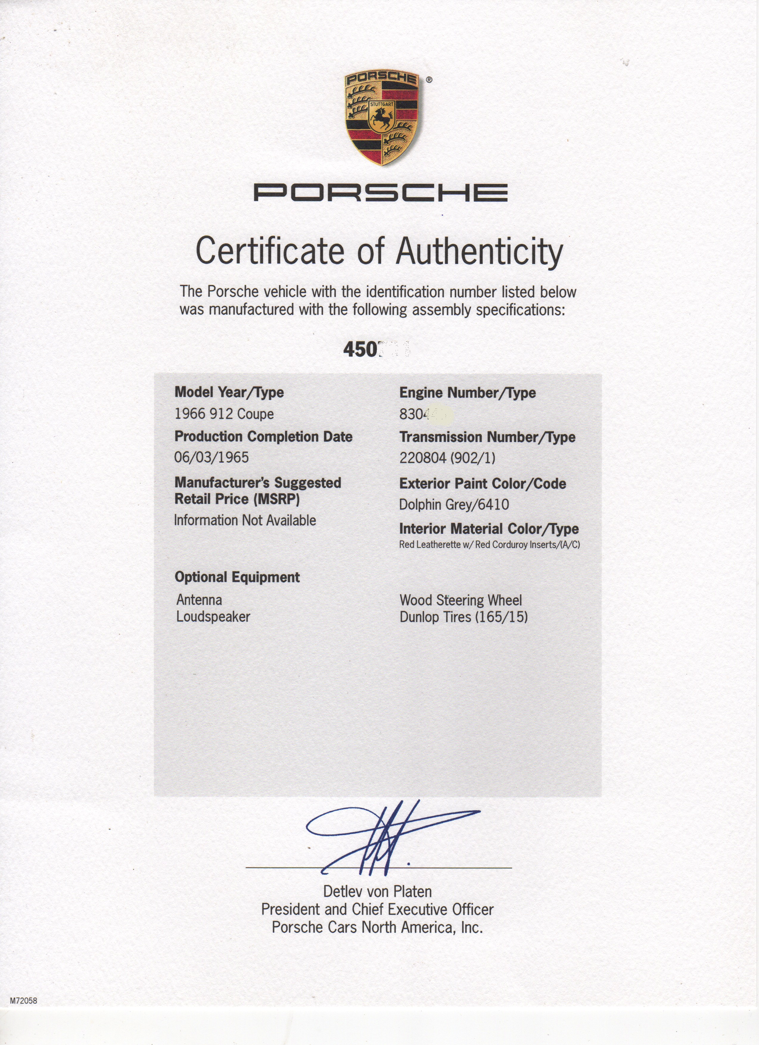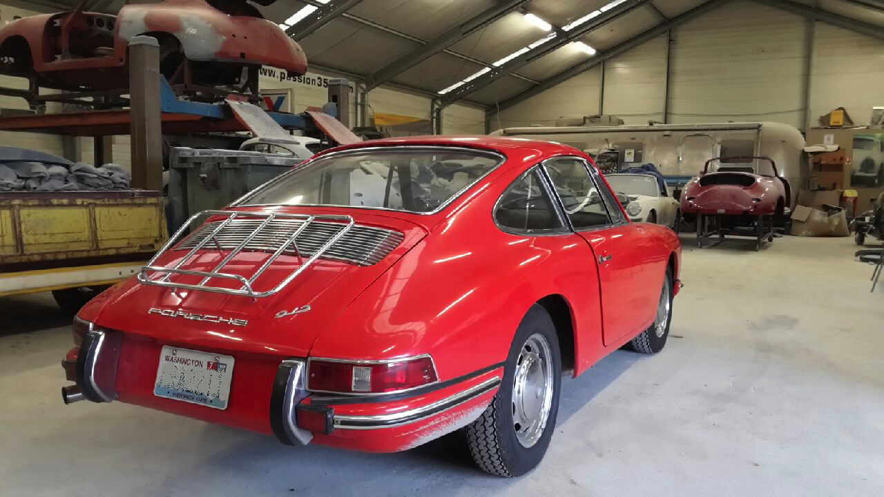 Sortie d’usine le 3 juin 1965 (suivant le CoA) ce coupé Porsche 912 1ère generation donc, est en très bon état d’origine meme si il à été repeint en rouge a un moment alors que sa couleur d’origine était gris héron.